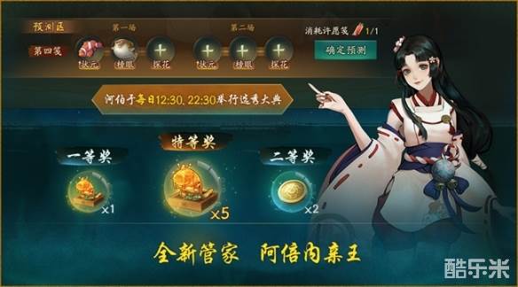 本活动中最激动人心的环节当然还是选秀竞猜!活动期间将累计举行15期选秀大典,降妖师们消耗许愿笺即可对最终的选秀结果进行预测,选秀结果公布后,降妖师即可根据预测情况获得相应的奖励,有机会获得管家-阿倍内亲王、限定妖灵五选一礼盒、太素晶核等珍稀好礼!累计预测进度,则可获取河伯宝箱、累计预测三选一礼盒等奖励。