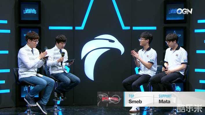 随着采访的进行,主持人对Smeb获得第一局的MVP表示了祝贺。两位主持人对Smeb都很熟了,因为他经常获得MVP来到赛后的采访区,目前他是MVP排行榜上的第一名。Smeb开玩笑地说到春季赛的时候他连MVP的前五名都没进去:“上赛季,我的MVP点数没有其他LCK中的小兄弟多。”