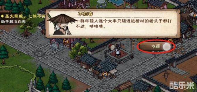 1、首先在洛阳药铺附近会自动触发剧情,得知来自长白山的“不归客”在擂台上摆擂,然后从(16,30)上擂台攻擂触发战斗;
