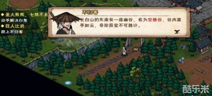 2、战胜不归客后,跟随不归客到洛阳南城门外(18,39)对话后他会给玩家一封空绝谷的荐信;