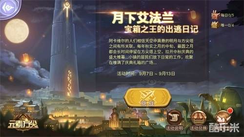 “人们相信天空中高悬的明月与方尖塔之间有所关联,每年秋实之月的中旬,最圆之月都会长时间停留在方尖塔上空,拉开中秋庆典的盛大帷幕……”随着中秋加价日益临近,《元素方尖》的游戏活动也已经与各位勇者大人们正式见面啦!在这场中秋庆典中,勇者大人们可以欢聚在堆满了庆典礼箱的广场上,通过参与活动,兑换包括全新时装、命运介绍信、中秋大礼盒、精致介绍信、圣职者进阶道具、符文宝箱等丰厚福利!