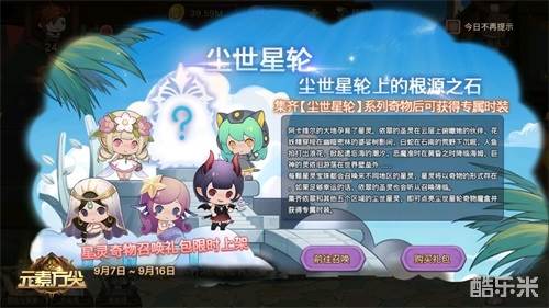 除了福利满满的中秋活动外,另一项全新游戏内容“星灵二期”,也终于揭开了神秘面纱,正式与勇者大人们见面啦!全新主题星灵“尘世星轮”现已实装,在这些星灵的帮助下,勇者大人们不仅可以获得属性加成,在集齐全部6款星灵奇物后,还可以获得专属实装哟!勇者大人还等什么,赶快进入《元素方尖》的游戏世界中,将这些可爱的星灵抱回家吧!