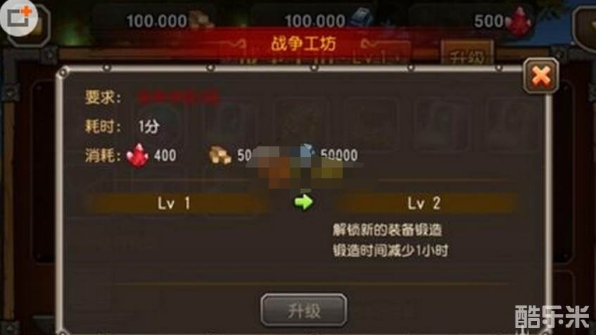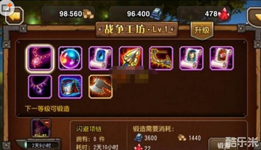 在小冰冰传奇战争工坊界面,不同的等级会有不同的可锻造装备,想要锻造更高级的装备就需要将工坊升级。