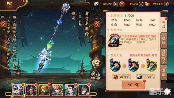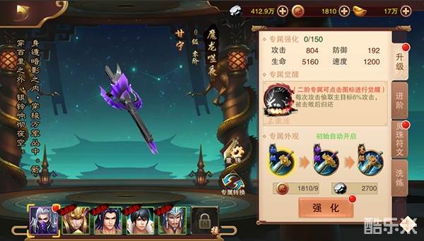 获得专属武器后,可以通过消耗竞技币和晶石来提高专属武器的属性。专属每次强化时可获得攻击22、防御5、血量139、速度32的属性,并且在强化的过程中有几率发生多倍暴击。