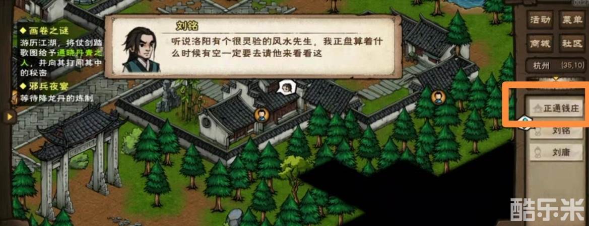 2.第二个隐藏任务是‘’正通钱庄‘’:玩家需要去洛阳白马寺外找菜半仙,回杭州正通钱庄复命,洛阳古董店买聚宝盆,回杭州正通钱庄给刘铭。(聚宝盆的二十两会归还给玩家)。