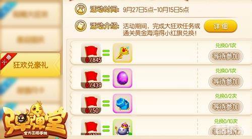 如果玩家已经完成了《弹弹堂手游》“假日大狂欢”的所有目标并获得了所有小红旗。那么,目前还能获取小红旗的渠道就只有限时副本“黄金海岸”。还缺少“小红旗”的玩家赶快去打黄金海岸啦,同时还没有兑换礼物的玩家宝宝们请注意狂欢兑豪礼活动的截止日期,不要错过。