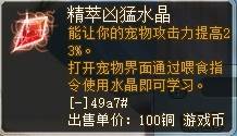 龙语商铺再次上线,本期活动带来了随机的优质宠物技能水晶包,还有低概率将额外开出精萃水晶来,说道水晶,先了解一下宠物水晶吧,宠物技能水晶,属于被动效果类技能,能带来百分比的加成,血量与攻击力是攻击宝宝主要的属性选择,这额外开出的精萃水晶就包含了属于血量的精萃健壮水晶与属于攻击属性的精萃凶猛水晶与精萃魔灵水晶。