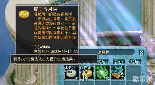 除了网页活动外,游戏内也开展了中秋月饼活动,野外的怪物偷走了月之祭祀用来制作月饼的材料,收集材料制作月饼,有属于男生的脆皮香月饼,也有着属于女生的冰淇淋月饼,在使用月饼时,能够随机的获得一个小时的随机属性加成,同时还有概率获得额外的道具奖励。