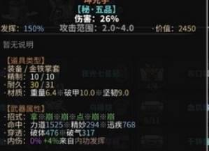 7.破甲:当武器的破甲值高于敌人被击中部位的护甲韧性时,对方的护甲有一定的损坏概率,而高出部分会增加武器的损伤。