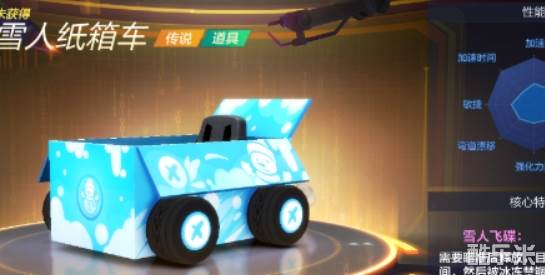 雪人纸箱车搭载了全新道具【雪人飞碟】:需要瞄准后释放,目标减速一段时间,然后被冰冻禁锢。既拥有飞碟的减速效果,又能够冰冻禁锢敌人,双重打击的雪人飞碟可谓是单点攻击神器!