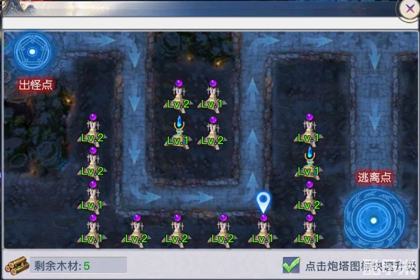 玩法思路:天雷塔在跟火焰塔同攻击频率的情况下拥有更高的伤害,同时搭配寒冰塔的减速再打出更多的伤害,优先升级天雷塔,可能输出的更快,最后再升级寒冰塔,因为寒冰塔主要是用来减速,所以优先级并不高。