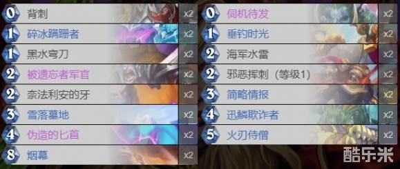 卡组除了有天胡的前期直接雪落墓地+被遗忘的军官+海雷背刺或者+武器这种天胡起手直接把对手秒掉,还有一手3费挂雪落4费直接迅鳞欺诈者+烟雾的combo,就算没有抽到海雷打出伤害,火刃侍僧前期也能站一波大的场面,剑宗气宗之间灵活切换。其他牌基本上都是辅助单卡,检索牌+直伤牌补伤害。这卡组还是那个味道,胡了无敌,不胡直接被踢死。