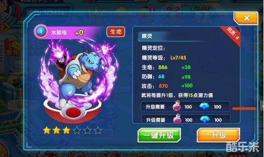 1)宠物升级,通过消耗升级资源,提升等级可获得属性上的提升,并获得潜力值