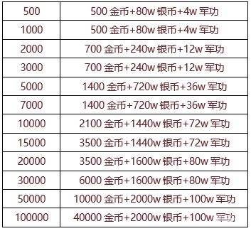 达到12000金币即可获得12紫色防御二阶宝物+8紫色攻击二阶宝物+8紫色兵力二阶宝物