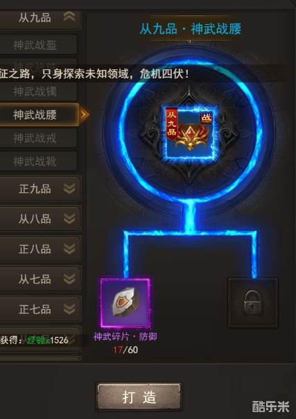 神武军装除了通过大漩涡BOSS直接掉落之外,也可以用神武碎片打造来获得。