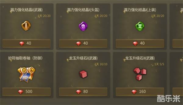 2:然后就是强化潜力,装备,龙玉等等的东西了,这是比较值得购买的,但是不建议全部购买优先购买提升比较大的,比如龙玉和纹章这种的;