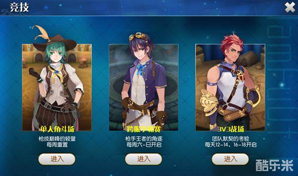开启后竞技场中分为3种模式,分别是:单人角斗场、跨服争霸赛。