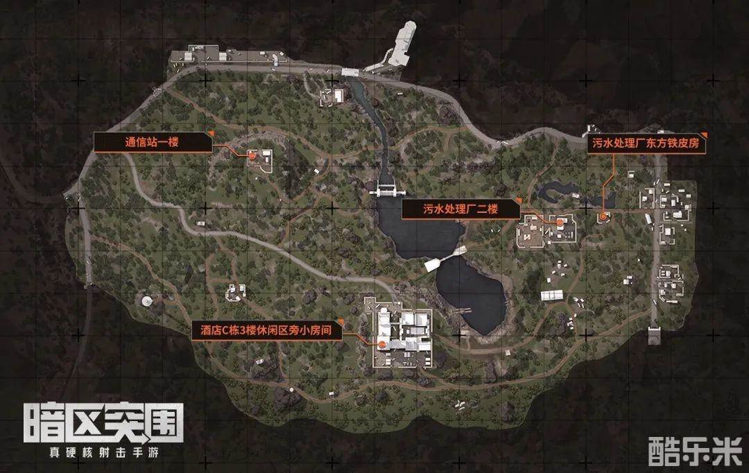 北部山区:通信站一楼、污水处理厂二楼、污水处理厂东方铁皮房、酒店C3休闲区旁小房间