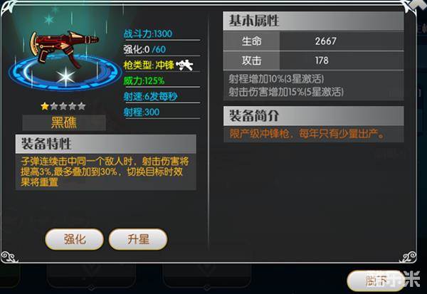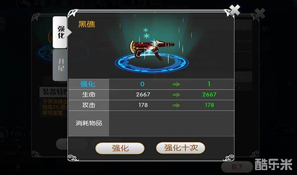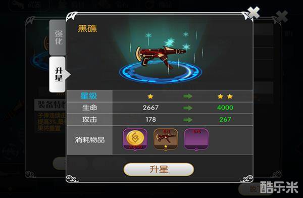 玩家点击升星即可对装备升星操作,需要消耗一定物品才可以进行升级。