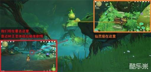 6.前往须罗蕈所在的山洞,降下山洞内的水面,根据指引修复并点亮一个草元素方碑即可。
