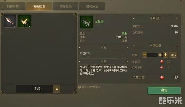 出售方式主要是在商城的我要出售板块,玩家把自己获得的东西卖掉,从而得到红钻收入。比如下图中,玩家通过鱼饵所得到的鱼就可以被出售,一条可以获得18红钻。