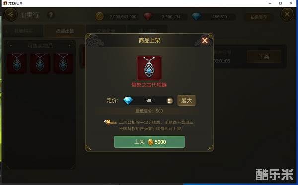 在拍卖之前,玩家可以先设置一个自己心理预期的底价,底价是以蓝钻为单位,买家也是以蓝钻来拍卖,拍卖完毕后,蓝钻会变成十倍数量的红钻给到出售商品的玩家,虽然拍卖行也会收取百分之三十的手续费,但是对于玩家来说也依然是一夜暴富的赚钱方法。