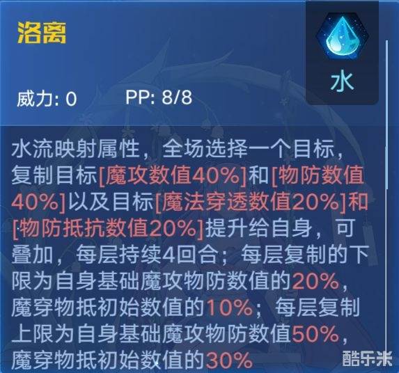 ⑵二技能复制的对象是全场中的任意一个目标,也就是说二技能可以对boss使用、也可以对洛洛离自己使用,还可以对队友选用。(用二技能的时候,先复制对面魔攻数值,再结合洛洛离目前魔攻数值以及复制的魔攻,看洛洛离魔攻是否高过对面,来判定是否触发特性落花离间)