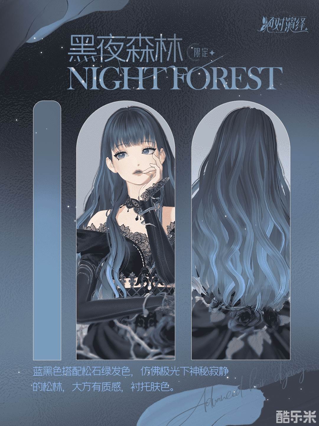 如果想要贵气感满满的发色,就选黑夜森林吧!染上这款黑蓝挑染松石绿的发色你就知道啦!黑蓝色大方优雅自带神秘气息,仿佛深邃广阔的星空。而发尾的松石绿渐变色则像天边轻盈飘荡的极光,又像神秘寂静的松林,为黑夜带来绚丽的光彩。