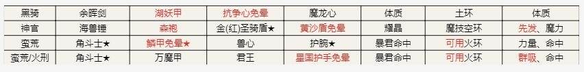 ● 阵容配置标红的不是红装,而是特别强调的免疫装备、战利品、注解、操作等