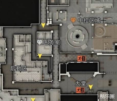 首先在合格地图中最好的出生点就是办公区了,这里比较靠近中控位置,前面也没有复活点,这里的区域不大,且后面就是地图边缘,不用担心被敌方追上来。大家可以将这里都搜完,然后直接前往中控的地方,不过也建议先去中控然后再回来搜索。