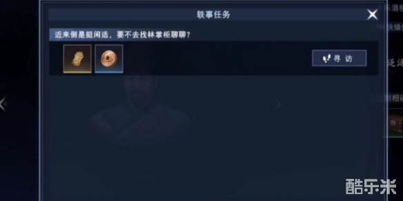 1、打开游戏NPC轶事找到林肃观,然后在轶事任务中找到【近来倒是挺闲适,要不去找林掌柜聊聊】,点击寻访。