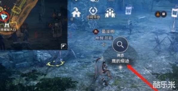 完成这个任务之后,就能开启领路鹰的任务了,需要找到鹰的三个踪迹,第一个就在boss入口的左后方,如下图所示;