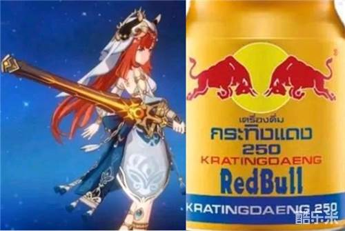 众所周知,妮露专属武器的配色并不好看,拿在妮露的手上很有违和感,和红牛包装的颜色一对比的确是非常相似,再加上妮露本身红头发和牛角的特征,这个外号非常搞笑的同时,还包含了一层嘲讽武器难看的意味,于是就广为流传了。