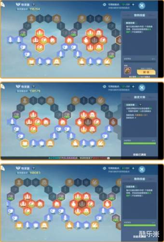 通过对比可以知道下分支线在第一二区块的部分节点效果总收益会高出很多,但是更依据自身在服务器排名。第三个区块上下分支主要是攻防的区别(关键节点增加导灵器攻击/抗性比)。