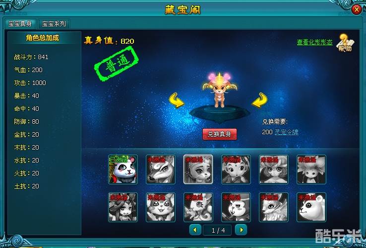 2.激活宝宝真身卡后可以变身该宝宝形象,并且获得宝宝真身属性加成: