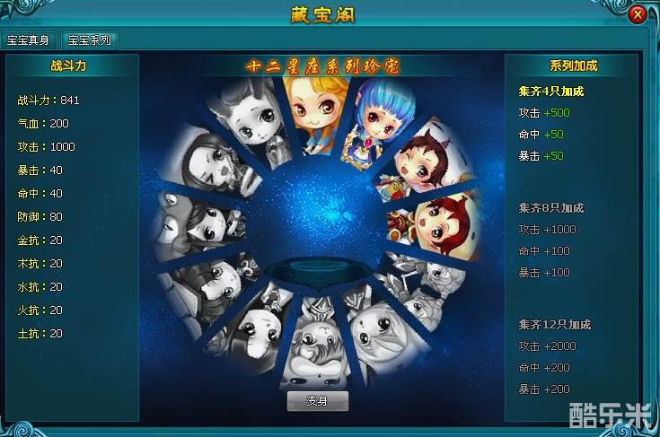 1.收集齐十二星座珍宠可获得大量属性加成: