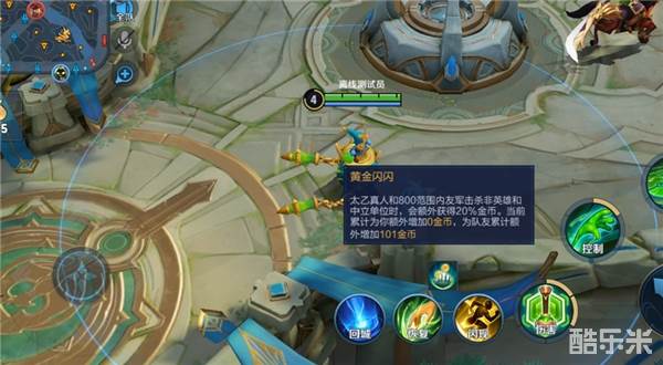 被动:自己可以在状态栏看到被动生效范围,自己和队友可以在状态栏看到额外金币收益的数量