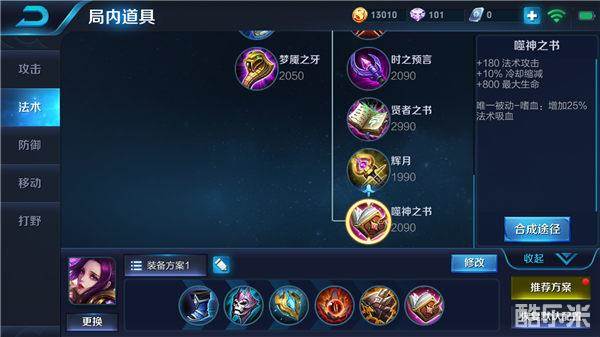 解析:不祥征兆提供血量、护甲加成,其被动还能克制敌方射手的输出。噬神之书提供法术吸血、法术强度、冷却缩减的加成,这些属性都非常适合芈月,配合上铭文提供的吸血和被动技能提供的吸血,芈月的团战回复能力十分恐怖。