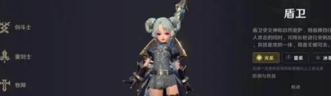 盾卫受到女神和大自然的保护,可以用盾牌抵挡敌人的攻击,也可以用长矛进行反击,攻守兼备。盾卫属于前排坦克,在团队中就像是一座坚固的堡垒,可以用盾牌挡住敌人的进攻,也可以用长矛进行反击。