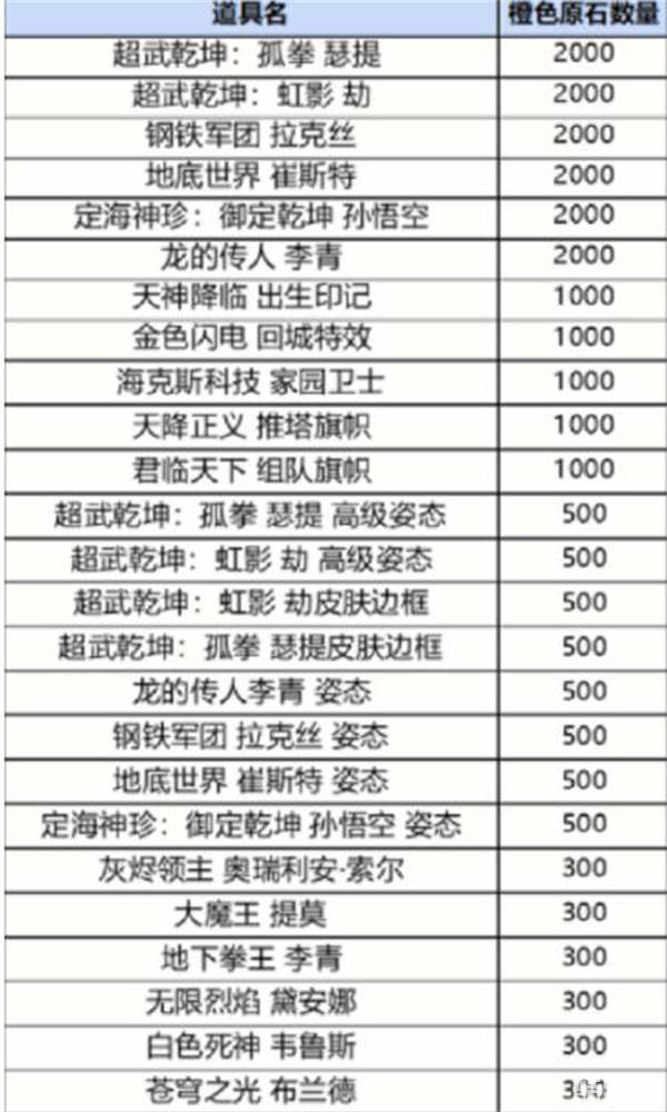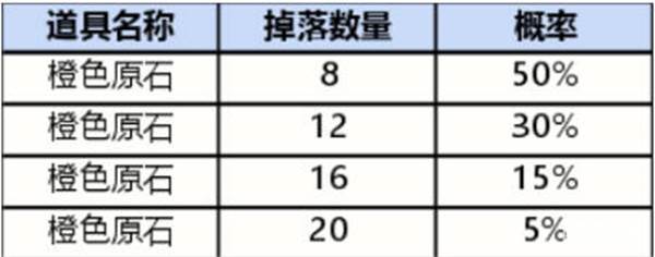 1:下图为必得的奖励,橙色原石,数量为八个,十二个,十六个,二十个,概率分别是百分之五十,百分之三十,百分之十五,百分之五;