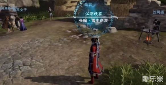 1、玩家需要前往流民营地找到NPC【张翰】,并与之对话就能领取【雪中送炭】轶事任务。