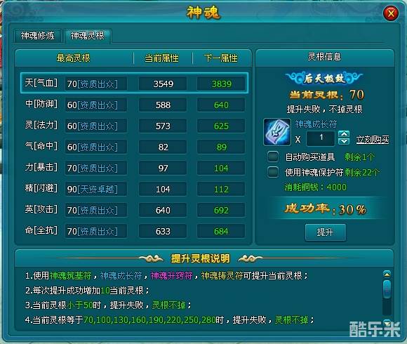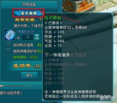 4.提升灵魂等级失败,灵魂等级可能掉落,神魂灵根值不会随之掉落;