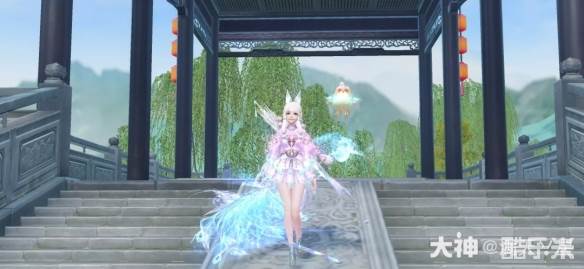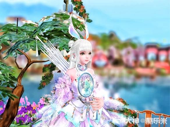 少女口中衔着一朵娇艳欲滴的【春花】,手持【玉骨沉】,一身粉蓝相间的【星月奇谭】让她成为了大荒各处最为亮眼的存在。双袖别出心裁地剪裁成两朵栩栩如生的繁花模样,镶嵌着各色流珠的银色束腰在腰间盈盈一系,少女姣好的身段便立显无疑。
