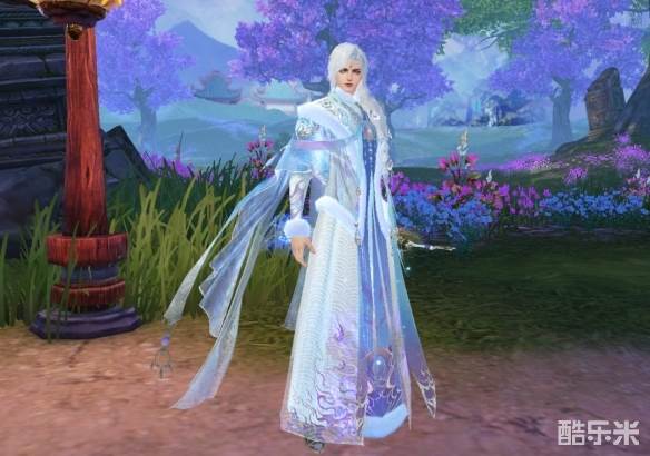 少侠的衣襟之上还有五彩丝线绣成的朵朵祥云,勾勒着袖口和下摆的雪白绒边,与少侠前胸那一颗纯净得毫无杂质的宝石吊坠,仿佛皆昭示了少侠华贵身份。如此俊朗的仙君,谁人看了不为之心动?