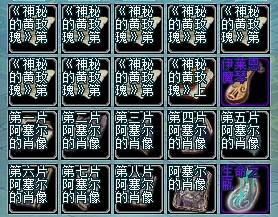 碎片类型道具:在战斗结束后,将有概率掉落《神秘的黄玫瑰》书页与《阿塞尔的肖像》碎片,这些碎片能分别合成黄玫瑰上卷、阿塞尔的肖像、黄玫瑰中卷,这些合成的特殊物品给予对应NPC能就能获取道具特殊饰品装备,就如将黄玫瑰上卷给予冒险公会的妮歌就能兑换到伊莱恩魔琴,将阿塞尔的肖像给予塞格罗斯神殿的大主教就能兑换到生命之瓶。