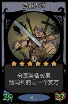2、强力输出的大哥。没有多余的装备槽,就利用武器大师提供多的武器效果。