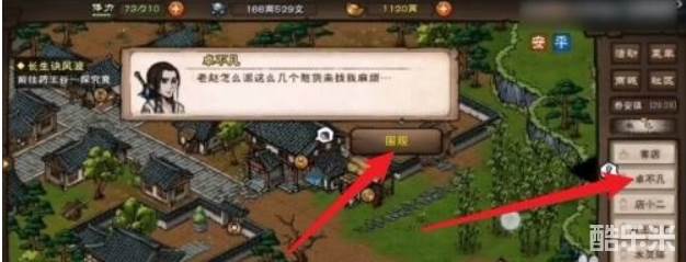 2.在泰安镇的客栈里会看到卓不凡,与之对话后,选择围观。