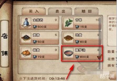 3、之后选中醒梦汤后花费600文钱就能成功购买获得醒梦汤了。