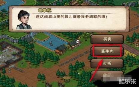 1、想要获得肉,触发蜀南米粉任务后前往峨眉山场景的41.27坐标点位置找到胡掌柜进行对话。