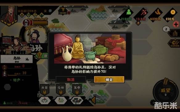 礼物其实只有觐见城市的时候才有用,必须拉满,那么赶路的时候,礼物只需1格,而粮草,赶路的时候是必须拉满,如果需要觐见,一般2格-3格足够了。